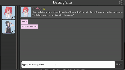 When creating this new dating system, I decided to take a different approach to how the scenes work. I thought that using a design similar to traditional visual novels could be interesting.